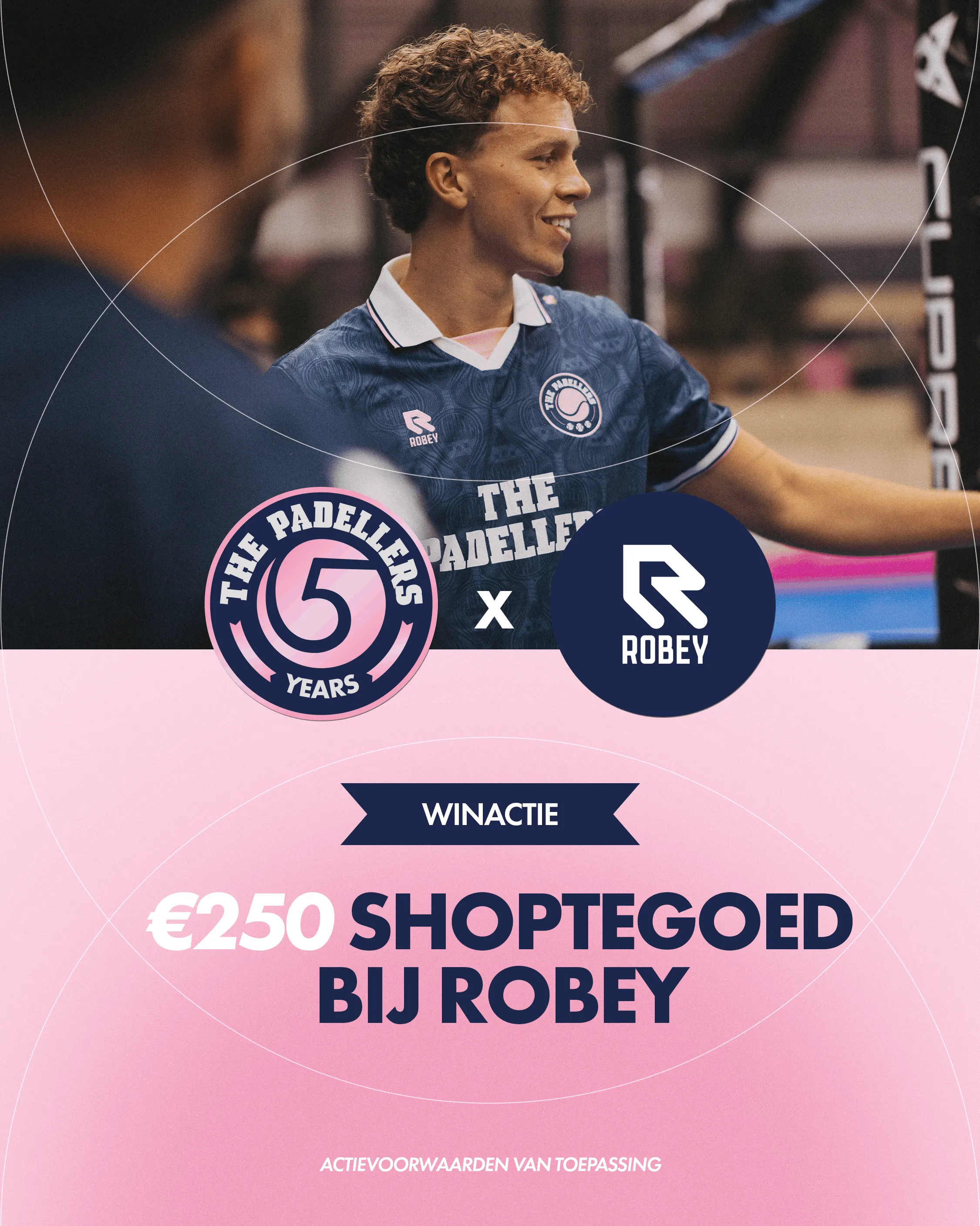 Wij vieren ons 5-jarig jubileum en dit willen we uiteraard samen met jou vieren. Robey maakt dit mogelijk en hierdoor maak jij kans om de perfecte padelkleding te shoppen. Misschien sta jij zometeen wel op de baan met het beste padeloutfit.